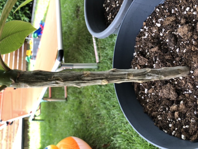 mein Plumeria Steckling hat nach dem umtopfen einen runzeligen eher weichen Stamm bekommen-