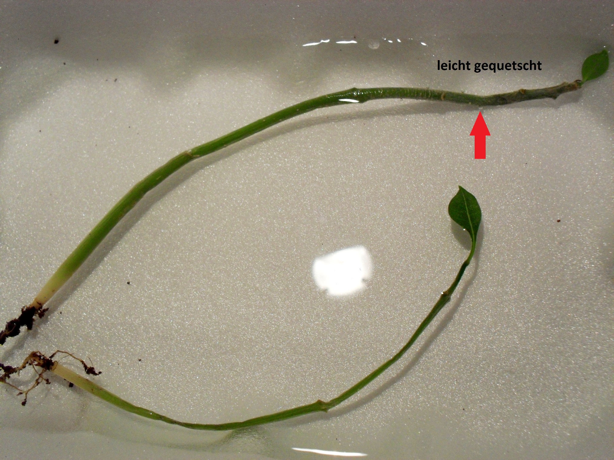 Natürlich nur so dass die Wurzeln im Wasser sind (und ein paar cm darüber), nicht der gesamte Stiel... Das mit dem Faulen hab ich doch auch geschrieben.