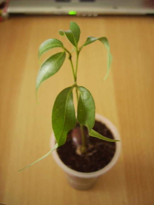 Ich habe mir 2 Litschi-Pflanzen aus Kernen gezogen, die jetzt ca. vier Monate alt sind. Bei der einen fiel mir jetzt ein neuer, kleiner Trieb, aus dem selben Kern, auf.