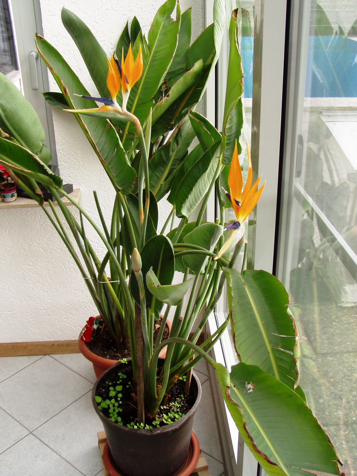 In den Wintermonaten steht meine Strelizie hell, bei Temperaturen zwischen 14 C und 18 C.