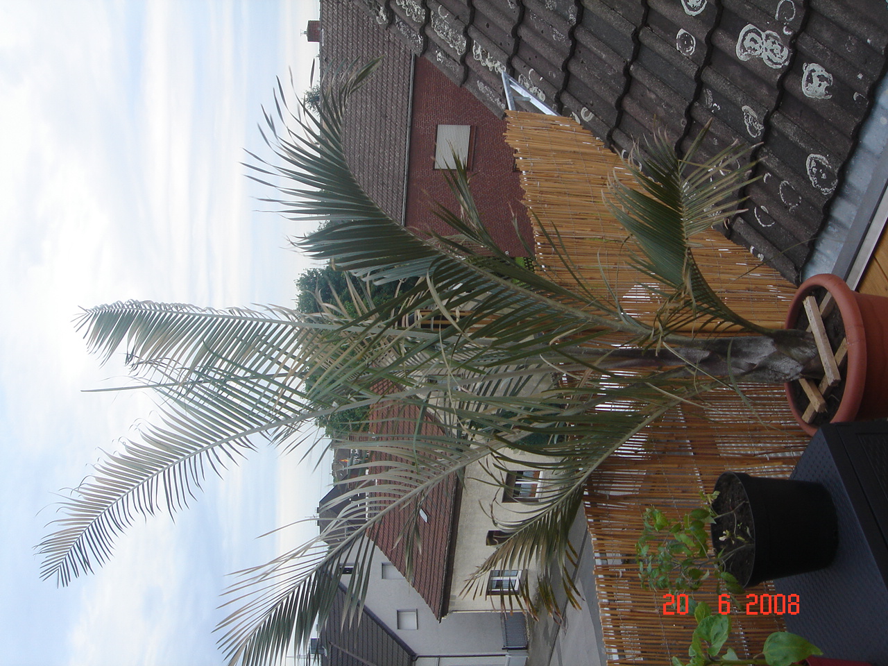 Die Pflanze steht auf einer Dachterasse mit voller Sonneneinstrahlung, und somit nicht im Schatten oder Halbschatten. Sie ist knapp 2 Meter hoch.