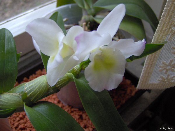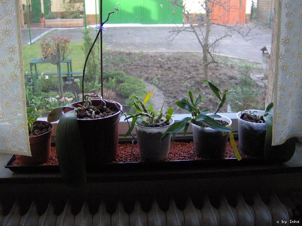 Ich hatte die Orchi - als ich sie bekommen habe - ca. 5m von zwei großen Südfenstern entfernt auf der Anrichte in der Küche stehen. Da dann die ersten Knospen abgefallen sind, dachte ich mir, dass sie dort vielleicht zu dunkel steht u. habe sie direkt ans Südfenster gestellt.