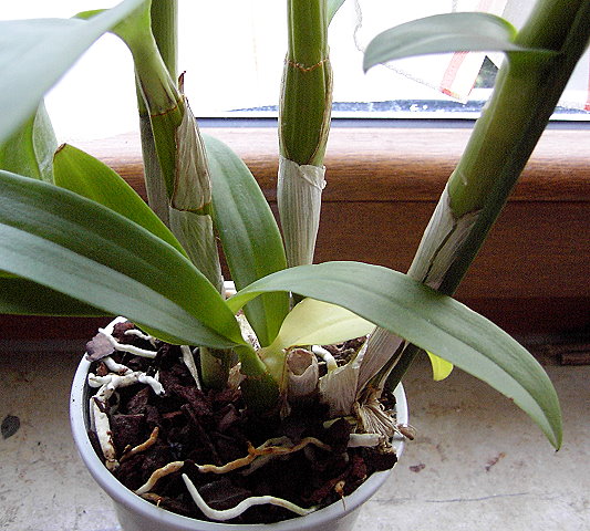 Deshalb wollte ich wissen, wie bei Euch die Orchidee Dendrobium compactum aussieht bis ich meinen eigenen Giessrythmus mit der Neuen habe und wenn die faltigen Stiehle? normal sind, dann wäre ich ja schon etwas beruhigt...