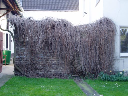 Auf dieser Seite der Mauer (Begrenzung zum Innenhof) ist allerdings ausschließlich Schatten. Auf der anderen Seite ist Beton, also kann ich leider nichts von der anderen Seite drüber wachsen lassen. Der Wein oder was auch immer es ist wird leider erst recht spät im Jahr grün und sieht auch dann immer noch nicht besonders toll aus. Am liebsten wäre es mir die Wand wäre mit etwas bewachsen das auch blüht. Aber im Zweifel kann man halt nicht alles haben. Ich hatte schonmal daran gedacht unten vor die Mauer Hortensien zu pflanzen, bleibt die Frage was kommt an die Mauer?! Am besten etwas, dass auch die Rückseite begrünt. Clematis? Weil ideal "kalte Füße und heißer Kopf"? Was meint ihr?!