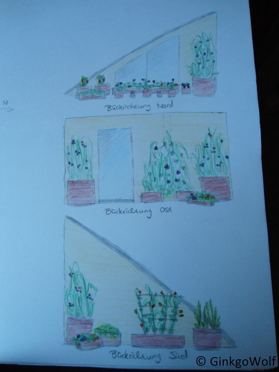 Da ist mir aber auf gefallen, dass rechts (also auf der Nordseite) zu viel Platz bleiben würde und du das natürlich kaum mit Töpfen voll stellen würdest, weil es dein Fenster verdecken würde.