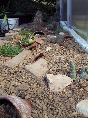 Die Pflanzlöcher habe ich großzügig bemessen und dann die Opuntien dort mit ausgesiebtem grobkörnigem Gesteinsmaterial gesetzt.
