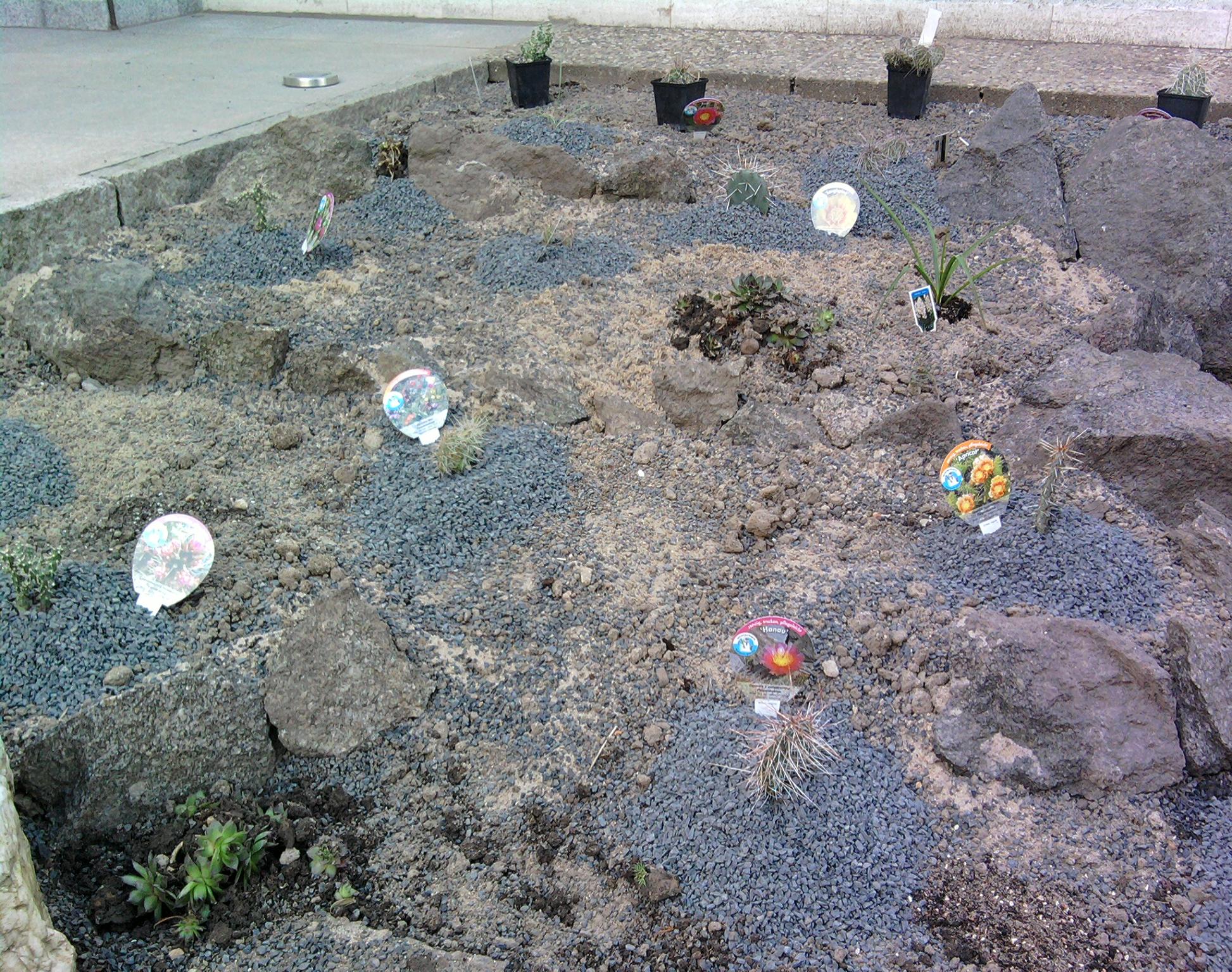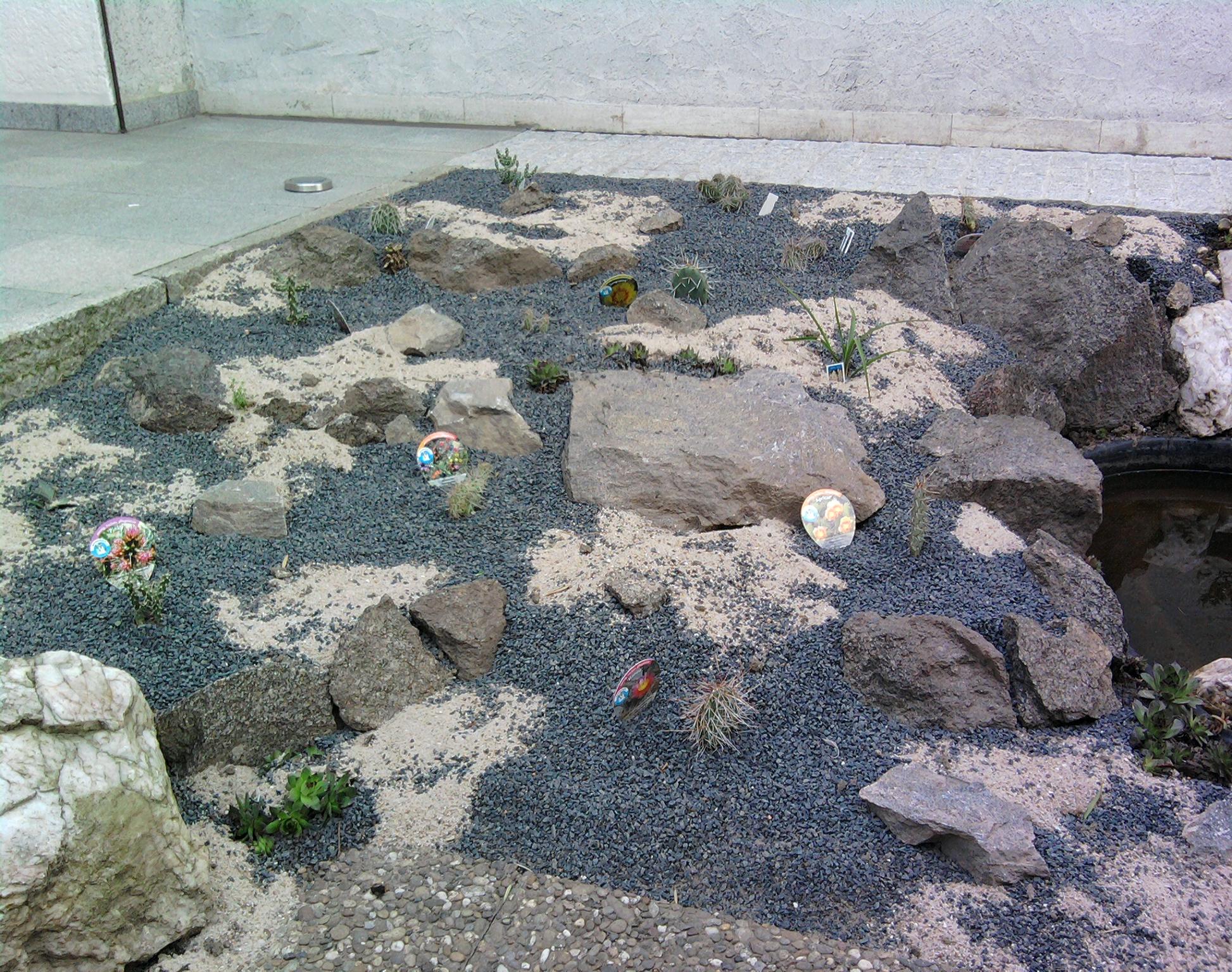 Dann der Bereich mit den winterharten Opuntien, da sind dann auch noch Semperviven, Sedum,