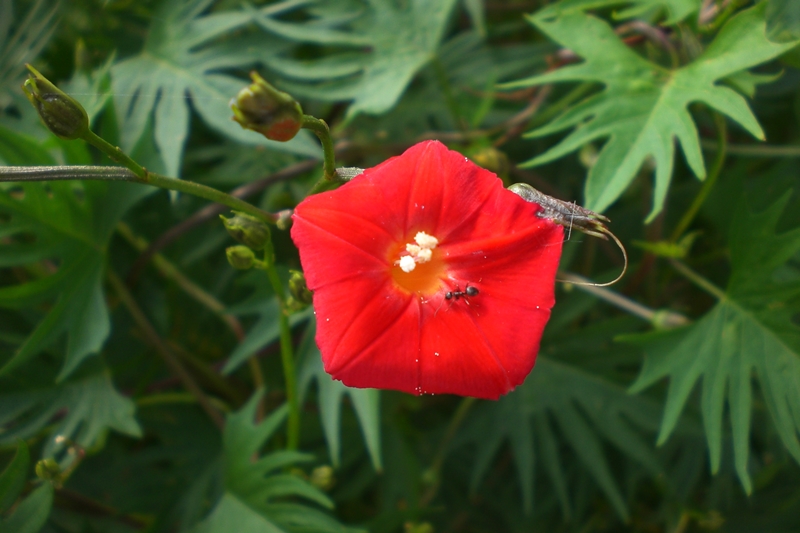 Dann hier mal die Ipomoea cairica. Da muss man (kann man) sich keine Gedanken über Aussaat machen. Am besten über Stecklinge vermehren, im Spätherbst die Knolle in den Keller und im Frühjahr wieder raus. Die Knolle wird von Jahr zu Jahr größer und kann schon mal 10 KG schwer werden. Nach ein paar Jahren sind Wachstum von 15 Meter gut möglich.