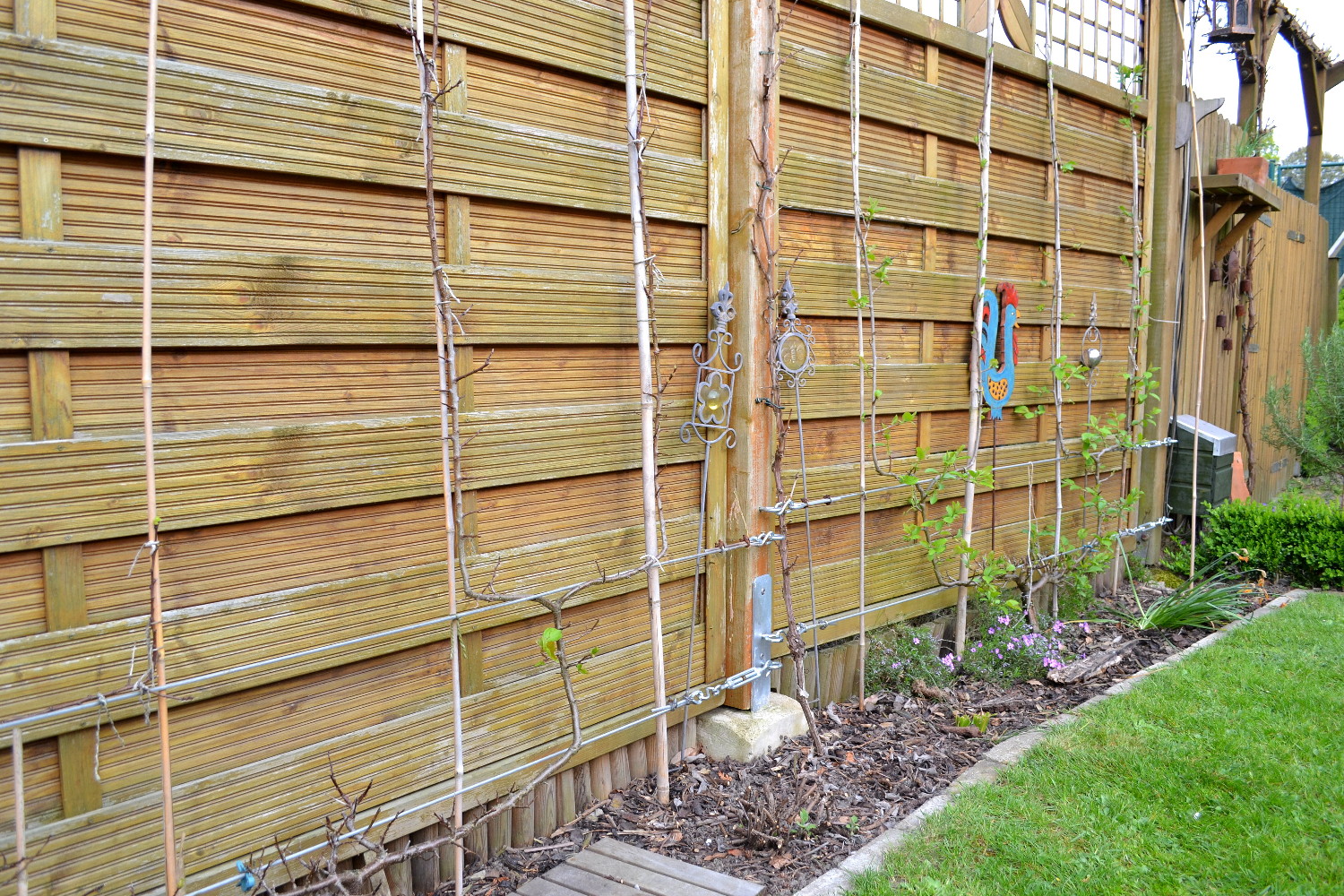 Wir haben in unserem Schrebergarten an einer Sichtschutzwand eine Aprikose, einen Weinstock, eine Pflaume und einen weitern Weinstock vor 4 Jahren gepflanzt.