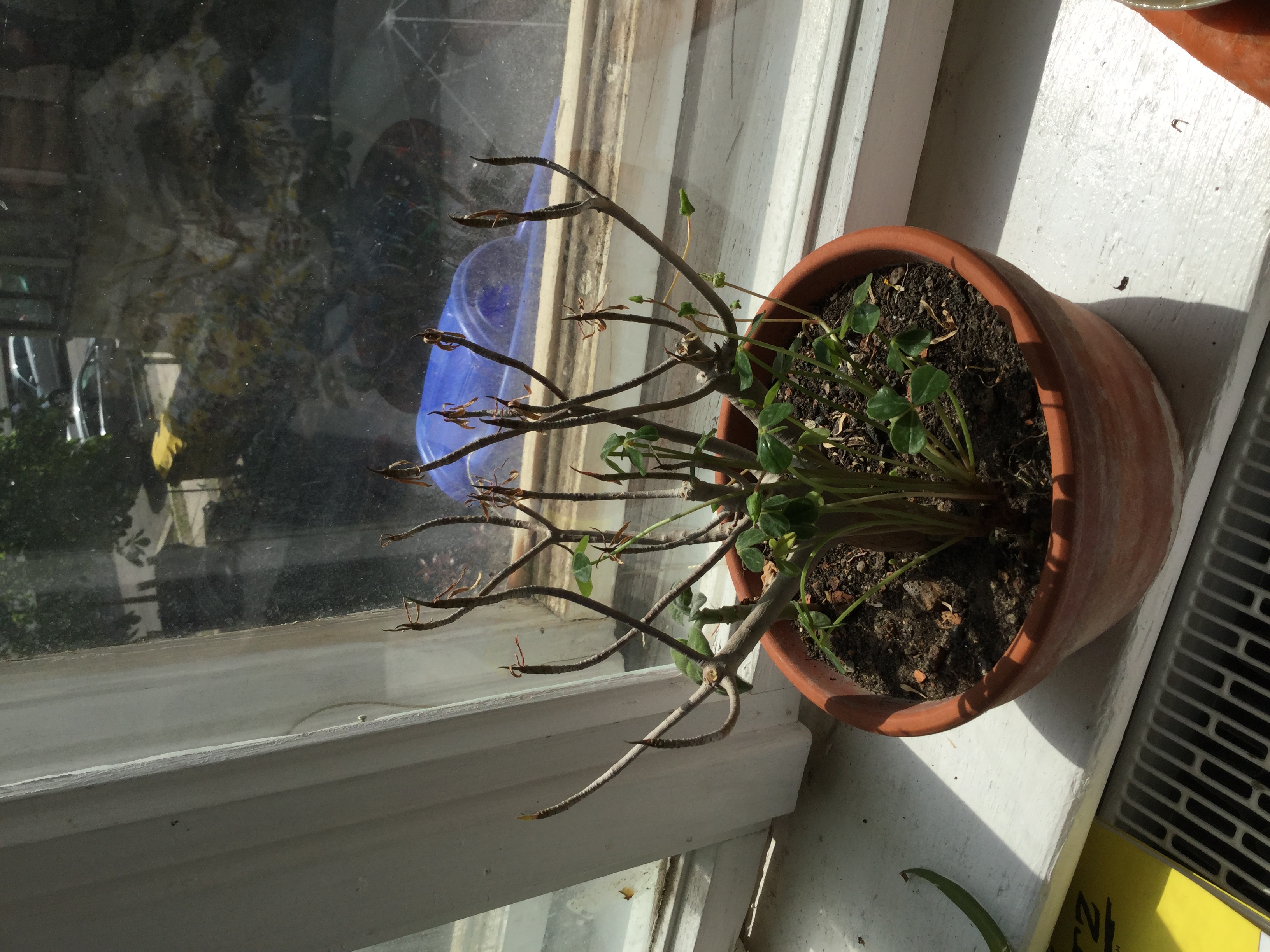 Ich habe schon eine Weile mitgelesen und jetzt mich endlich angemeldet. Vor ein paar Wochen habe ich auf einem Markt diesen Baum erstanden, so 20cm hoch. Als ich in kaufte hatte er jeweils um jeden Trieb einen Ring von ca.6-8 glatten, grünen, spitzen, nadelähnlichen Blättern. Der Verkäufer bezeichnete ihn als Sukulent (was mich ein wenig gewundert hat, da die Blätter überhaupt nicht fleischig waren). Ihm zufolge bräuchte er viel Sonne, und würde im Winter alle Blätter bis auf den obersten Trieb abwerfen. Das hat er jetzt alledings mitten im Frühling getan. Weiß jemand was das für ein Baum ist?
