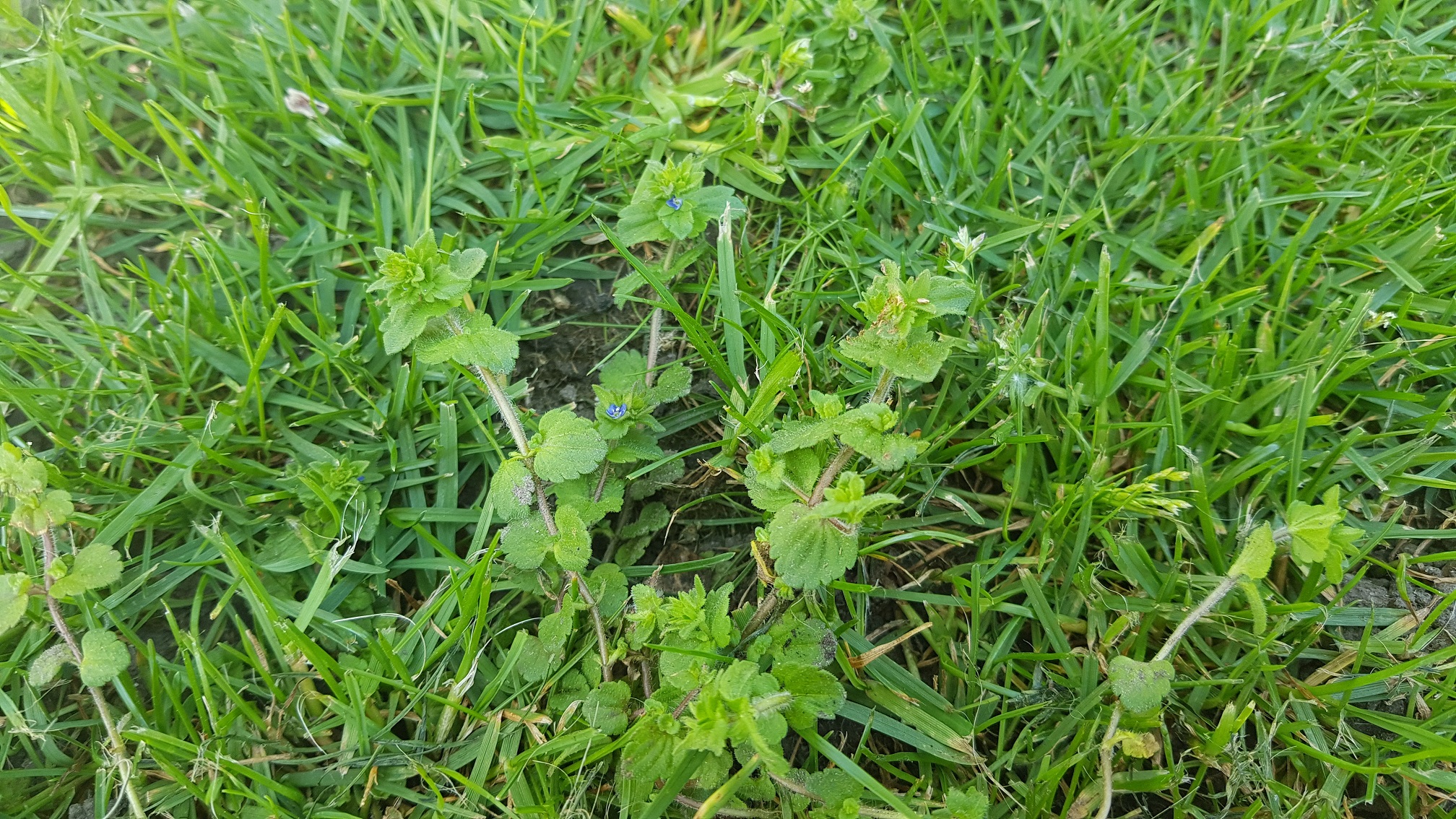 und dann habe ich das (kleine blaue Blüten) noch im Rasen.
