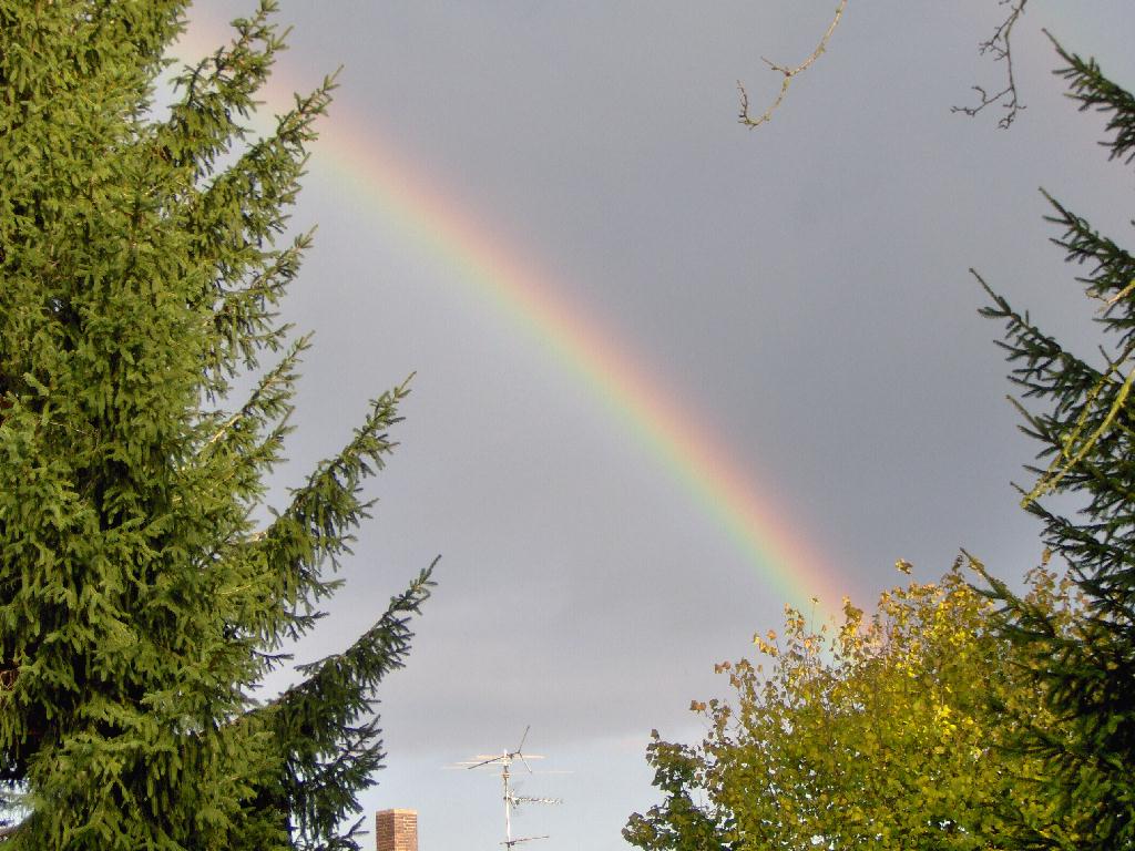 Der Regenbogen erinnert mich jedesmal an die biblische Geschichte von der Sinflut. Da heißt es am Schluß: