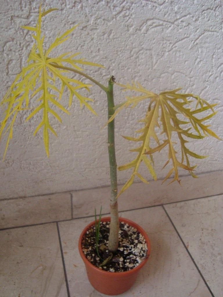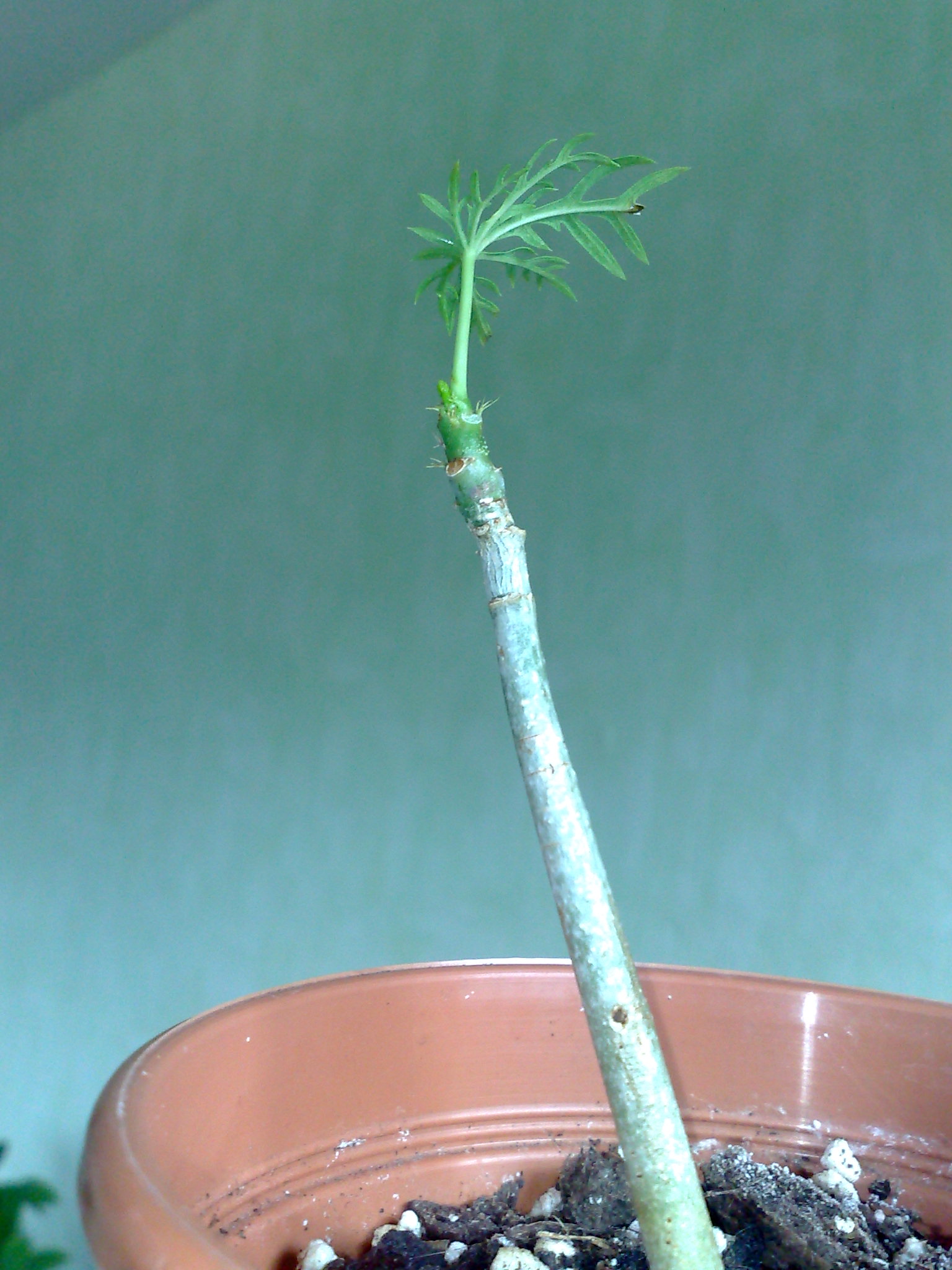 Die Jatropha schmeißt alle Blätter, da steht dann nur noch der Stamm, nix dran. Ich musste bei meiner großen J. arg kämpfen, weil GG meinte, der "traurige Elias" würde wohl nichts mehr werden. Wegwerfen könne man die ja noch in ein paar Monaten, hab ich gesagt und sie durfte bleiben.