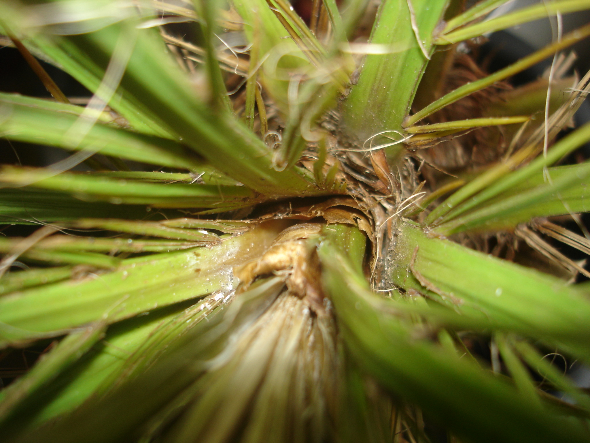 Das PSM entsprechend Vorschrift anrühren und von oben in die Pflanzenmitte geben (kleine Kanne oder auch Spritze verwenden), nach jeweils 2 Wochen wiederholen. Es muß soviel Mittel sein, damit es auch unten ankommt. Faulen wird da nichts, in der Natur hält ja niemand den Regenschirm.