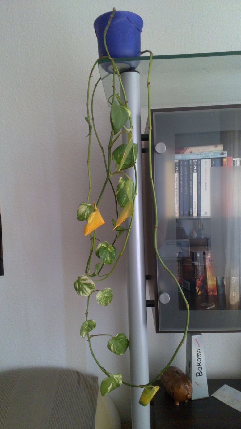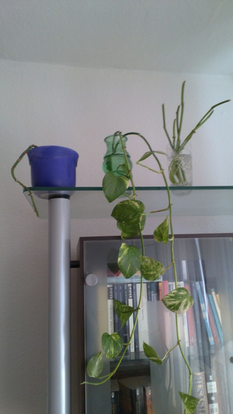 Die Efeutute braucht da oben nen Übertopf, sonst würde sie bald den Abflug vom Regal antreten...