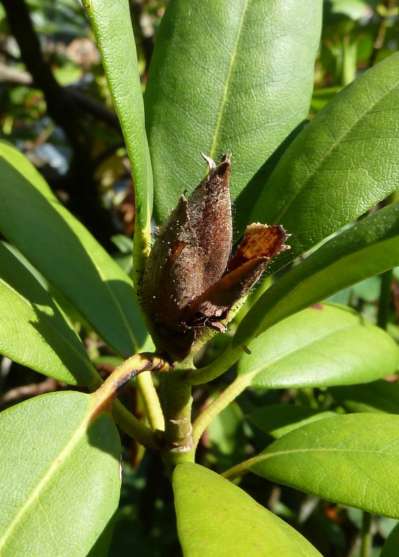 Als ich nun heute da war, wieder nichts. Erst dachte ich na super wieder verpasst, dann sah ich, dass weder Reste des Blühtenstands zu sehen waren, wie es bei anderen Rhododendren auf dem Friedhof der Fall war, noch vertrocknete Blühtenblätter oder gar vertrocknete Blühtenknospen zu sehen waren. Einfach nichts!