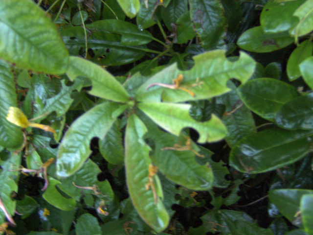 Wer hat eine Idee, welches Getier sich da an meinen Rhodo drann macht?