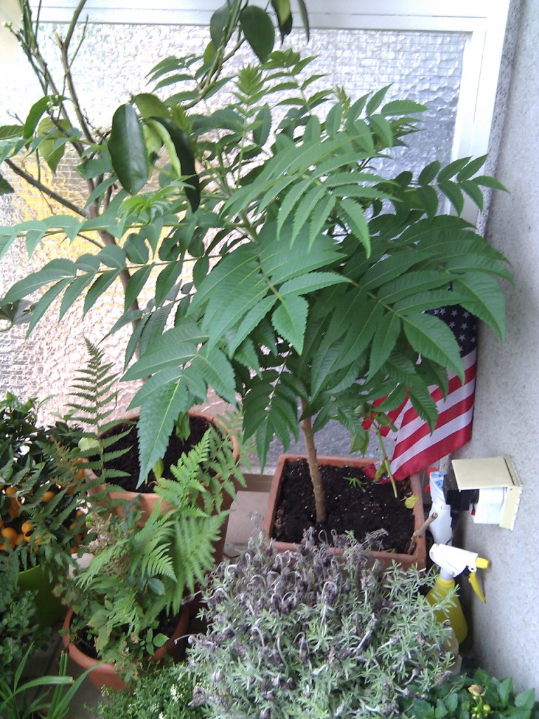 Dieses Frühjahr habe ich den in einen Topf gepflanzt und er schlägt prächtig aus, doch ich bin mir nicht ganz sicher, ob das ein richtiger Essigbaum ist. Die Blätter sehen nicht so glänzend aus wie bei einem echten und sie sind irgendwie sehr groß.