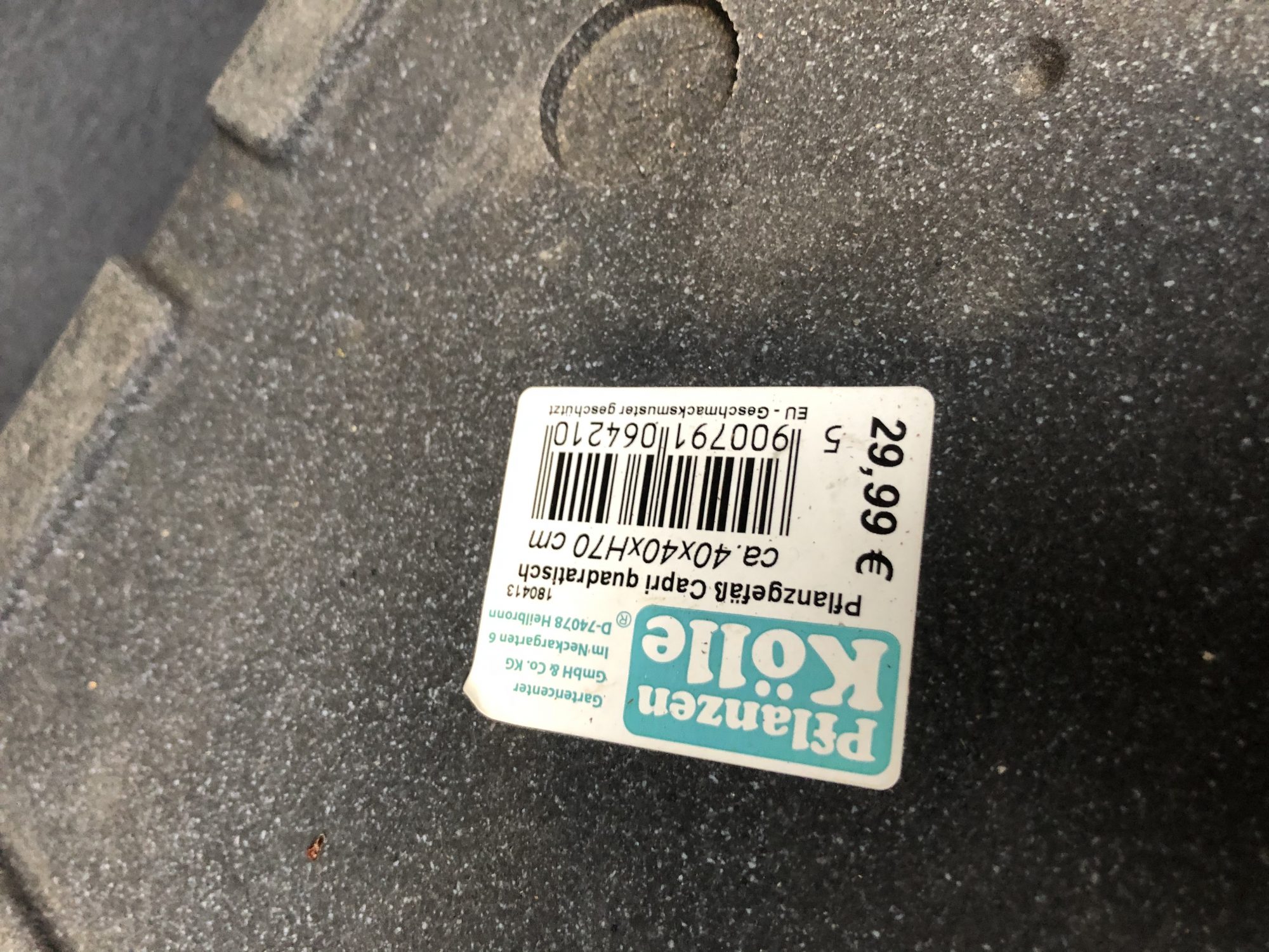 Wir hatten uns daher gedacht ihn nun in einen hohen Außenkübel umzutopfen ohne Innentopf. Dieser hat die Maße 40 x 40 x 70 cm.