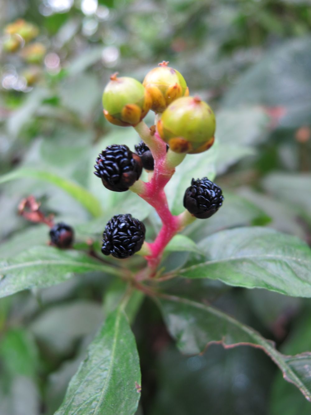 Rivina hat eine weisse Blüte und als Frucht eine rote (oder gelbe) Beere und sieht mehr wie Phytolacca aus.