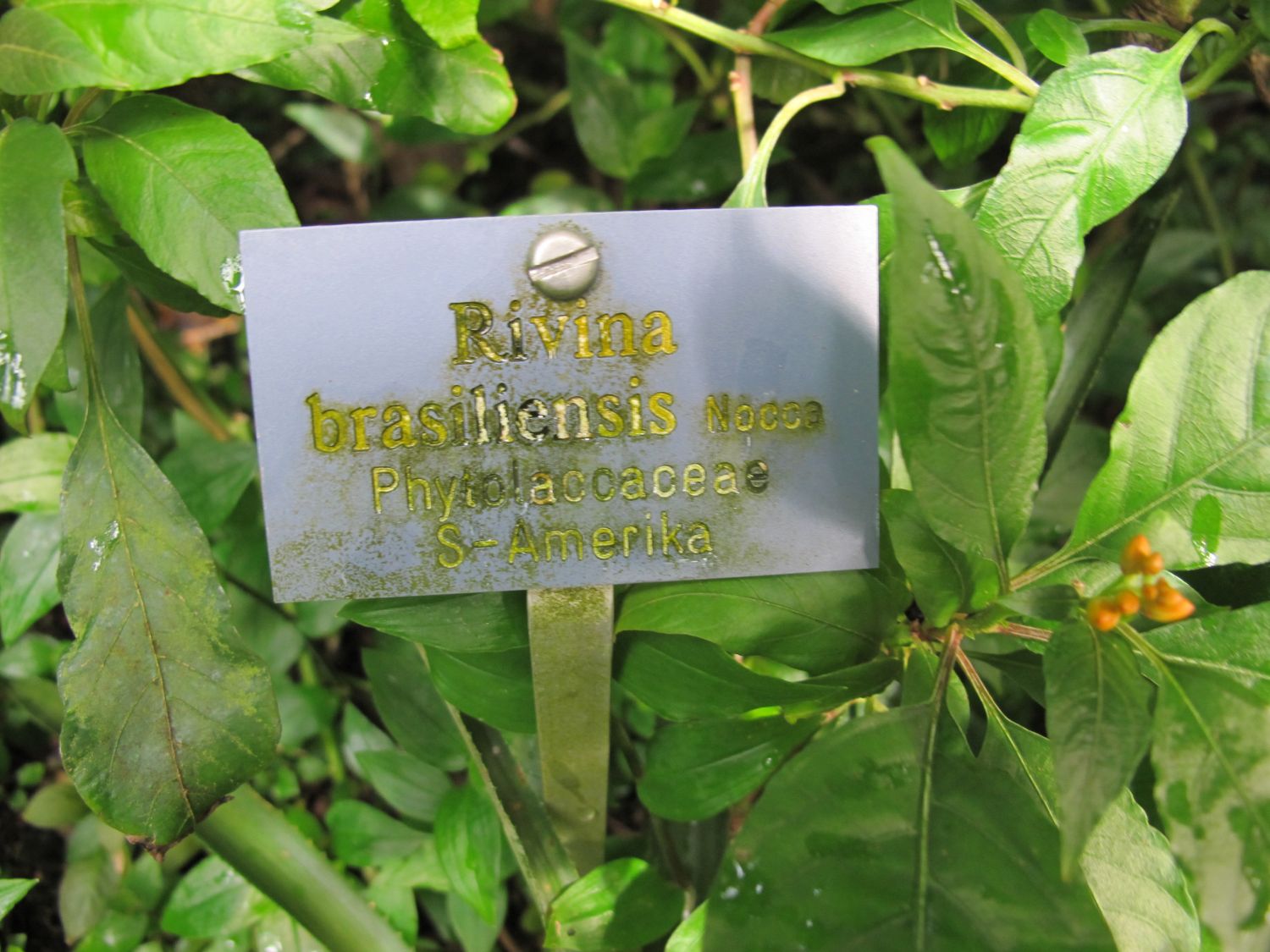 Ich hoffe, ihr könnt mir weiterhelfen: Ich habe Fotos aus dem Botanischen Garten in Bern von einer (laut Beschilderung) Rivina brasiliensis, die aktuell wohl nun Rivina humilis heisst (http://www.tropicos.org/Name/24800122). (siehe Fotos - leider habe ich nur die 3, ich habe sie eher "just for fun" fotografiert und habe nicht gedacht, dass ich mal davon Fotos brauche um sie zu bestimmen... )