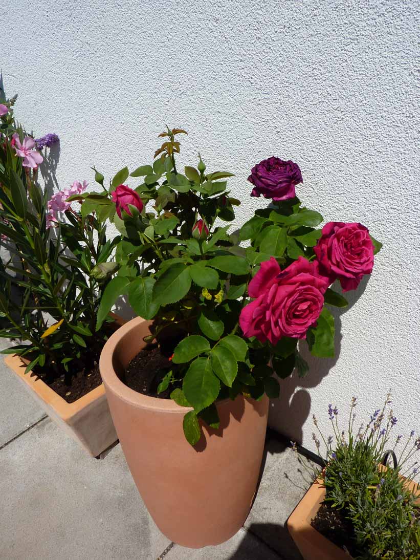 Ich habe eine englische Rose im Kübel am Balkon. Standort ganztags vollsonnig. Habe sie diesen Frühling in der Gärtnerei gekauft und sie gedeiht an und für sich eigentlich ganz gut, hat schon viele Knospen/Blüten bekommen.
