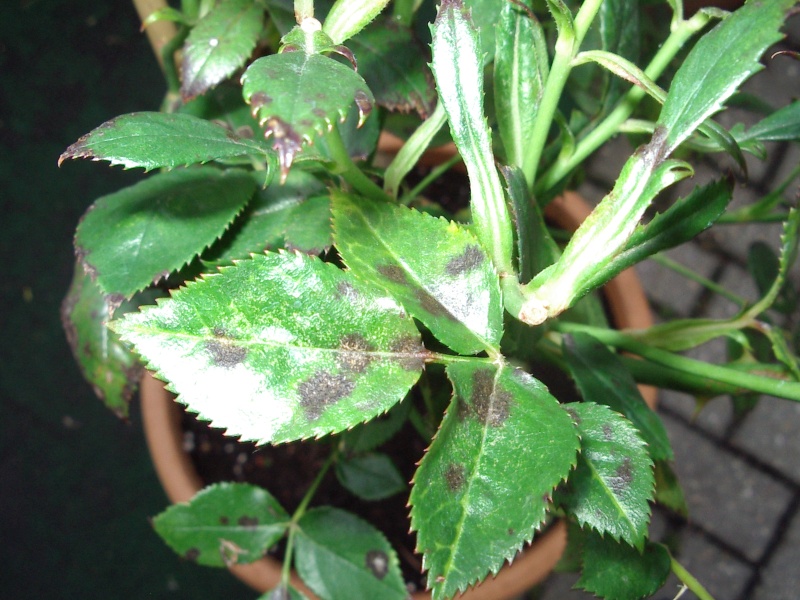 Mein Rosenstämmchen hat auf den Blättern seltsame schwarze Flecken. Ich dachte erst an Rosenrost, habe aber keine orange-farbenen Brubbel gefunden.