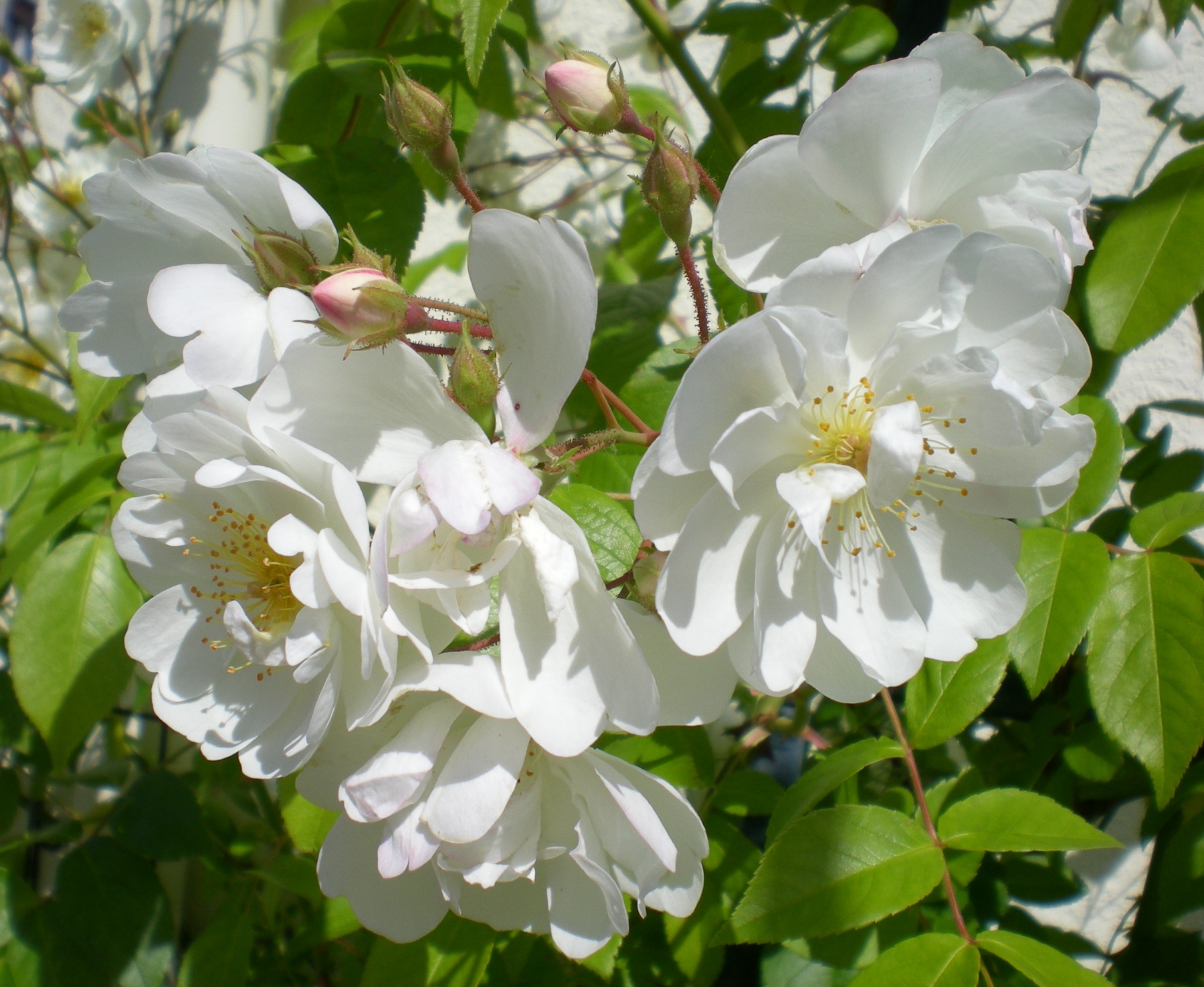 bei mir blühn auch welche, und das, obwohl ich nicht sooooo sehr vernarrt in Rosen bin ... nicht, daß mir die Blüten net gefallen