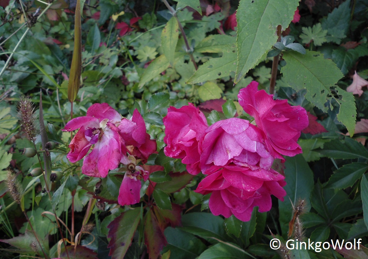 Also, die "Regenbogenfarbe" der Blätter scheint sich von selbst wieder zu geben, ich meine gestern gesehen zu haben, dass sie grün nachdunkeln. Also war's wahrscheinlich nur so 'ne Art Sonnenschutz oder die Neuaustriebe sehen einfach so aus.