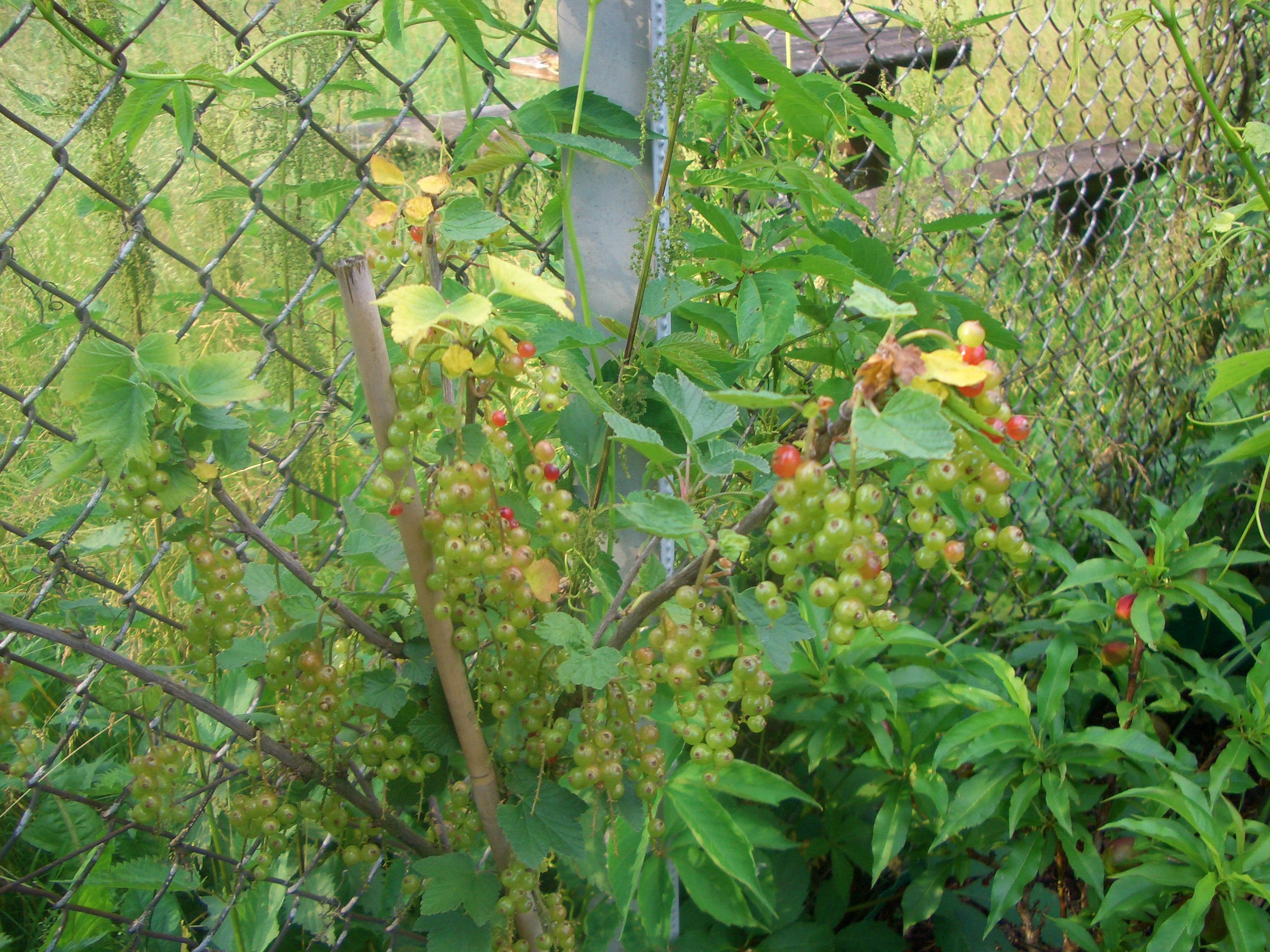 Und die gesäten Gurkenpflanzen und das Melonenstämmchen haben komische Linien und das Johannisbeerstämmchen hat gelbe Blätter bekommen.