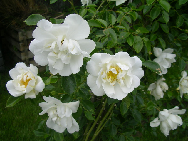 Bei mir blühen jetzt alle Rosen. BEsonders überrascht hat mich die nelkenblütige Rose "White Grootendorst" (rugosa- Hybride) weil sie nicht nur weiße sondern auch rosarote Blüten hervorbringt. Sogar zwei ganze Äste sind nur rosa.