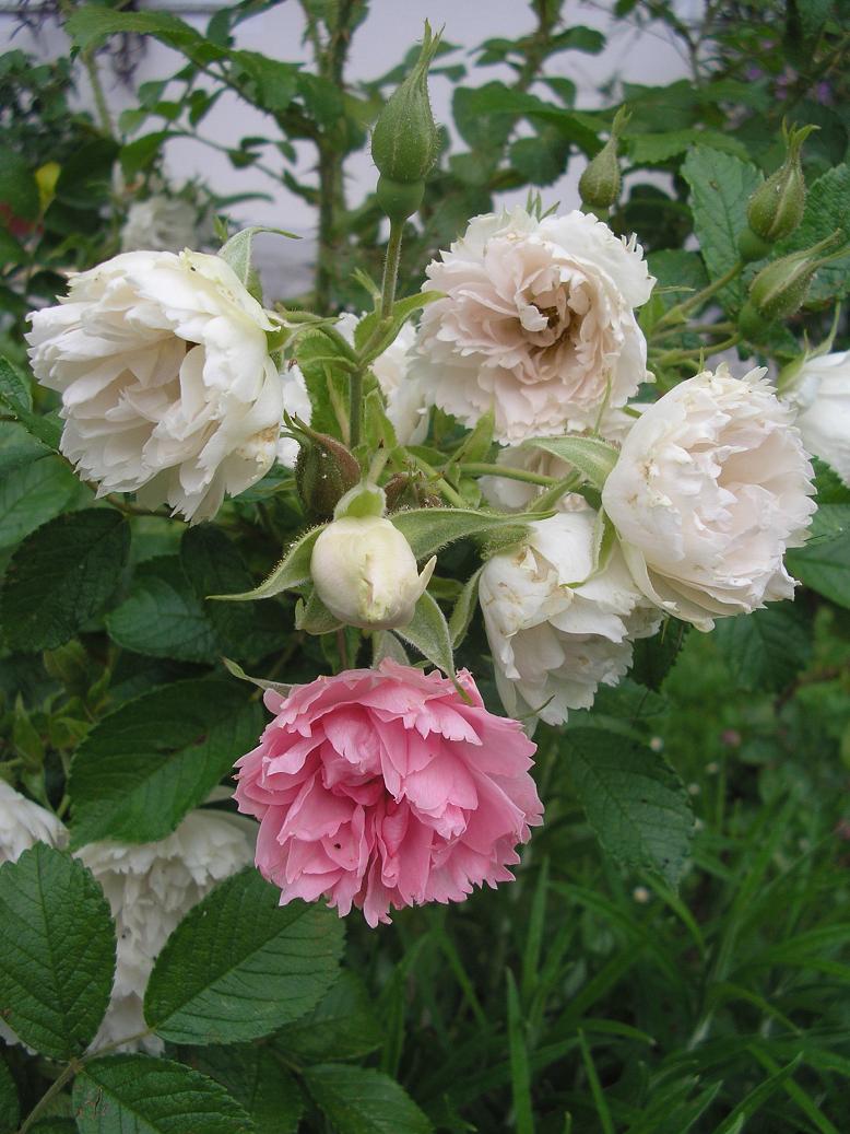 Bei mir blühen jetzt alle Rosen. BEsonders überrascht hat mich die nelkenblütige Rose "White Grootendorst" (rugosa- Hybride) weil sie nicht nur weiße sondern auch rosarote Blüten hervorbringt. Sogar zwei ganze Äste sind nur rosa.