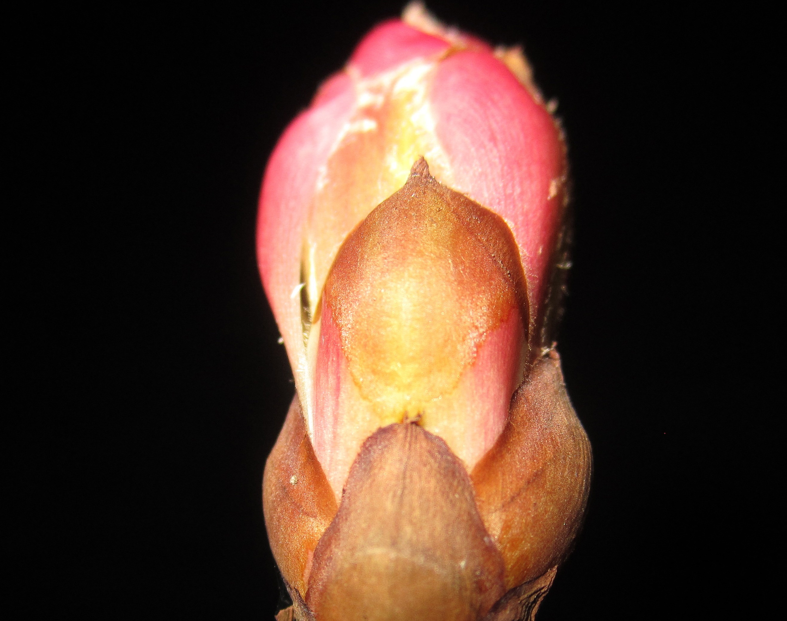 ich bin neulich am Mutterbaum meiner vermeintlichen gelben Pavie vorbei gegangen. Der Baum hat grade angefangen zu blühen. Nur ist die Blüte nicht gelb sondern rot...