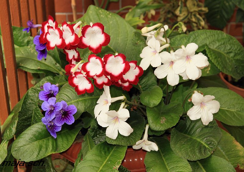 Dann noch ein paar bunte Blüten von mir . Meine Drehfrüchte legen jetzt richtig los . Die stehen vor Regen und Wind geschützt im Hundezwinger .