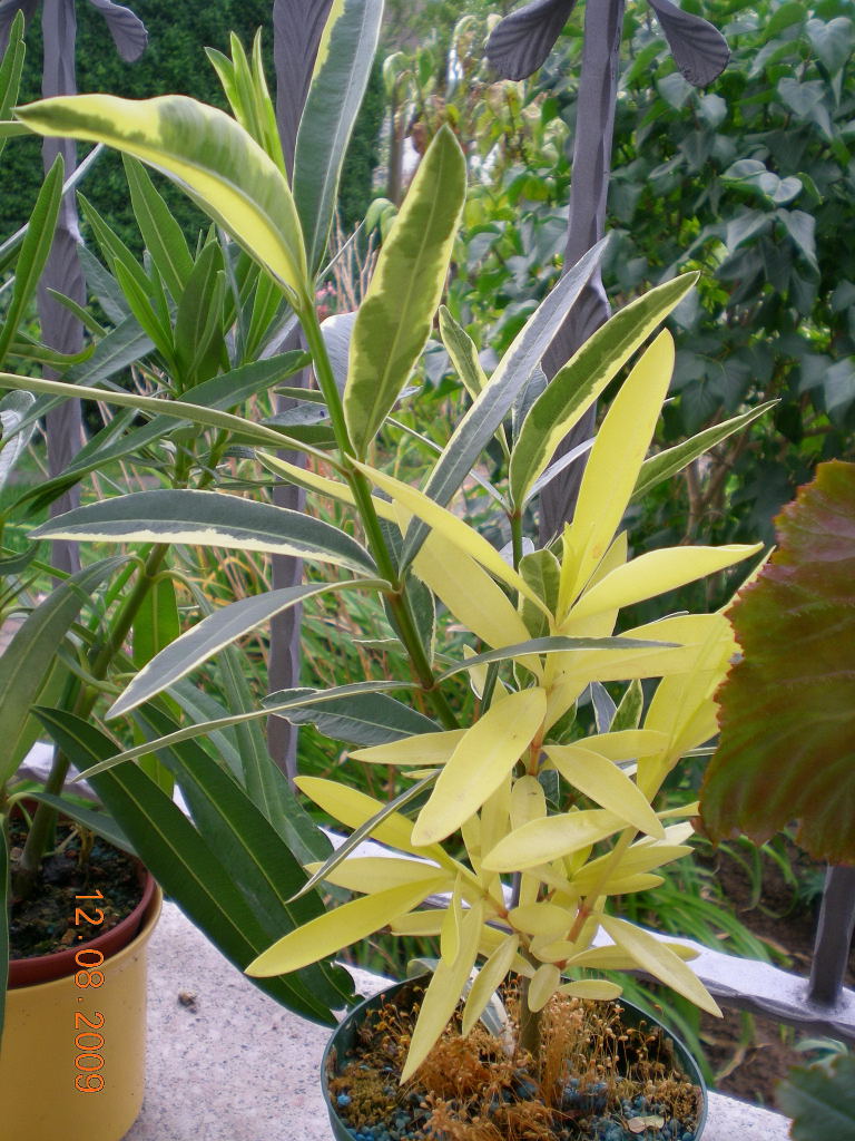 @ Martin--hier ist einer von den panaschierten Oleandersteckis. Er will auf der einen Seite gelb bleiben. Aber er wächst.