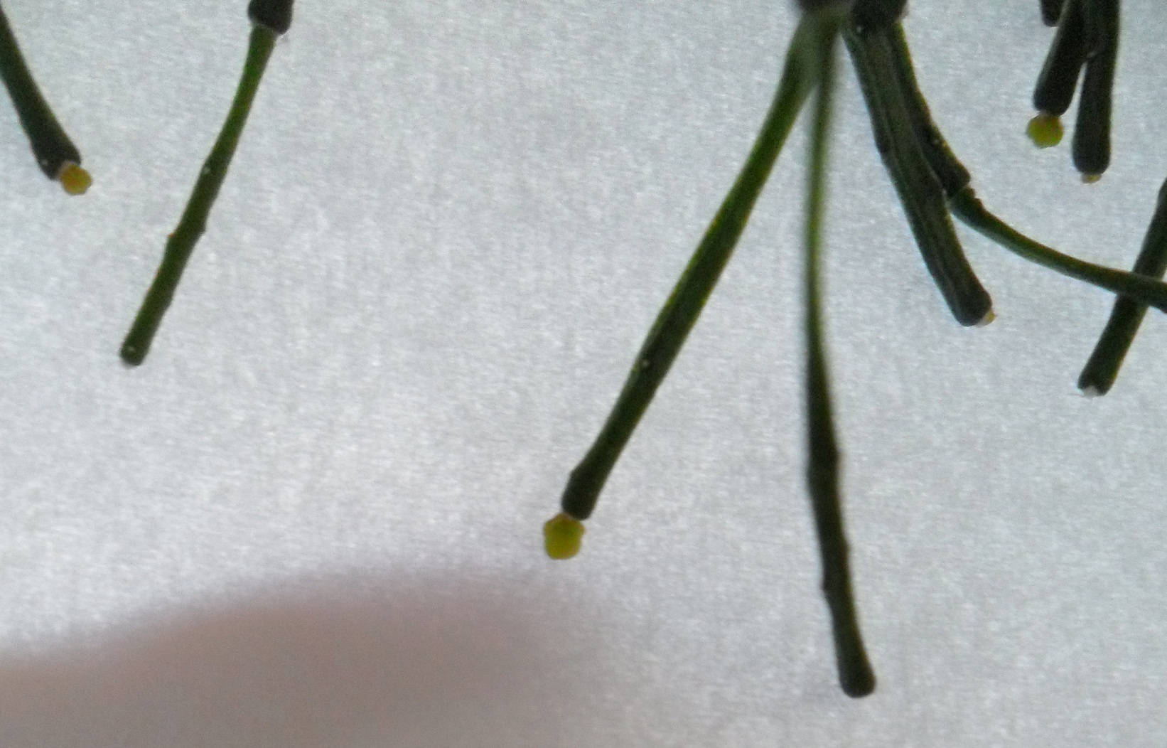 Der Hatiora Stecki hat auch super gewurzelt und macht schon neue Glieder. Aber er macht auch noch so andere Knubbelchen, die aber nicht wie Glieder aussehen. Könnten das etwa Blüten werden?