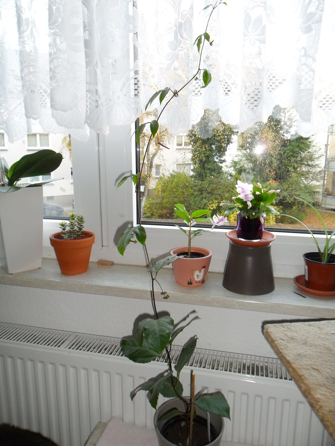 Auf dem ersten Bild siehst du im Vordergrund die größere Passi... die ist echt sehr schnell gewachsen! Daneben, in dem Übertopf mit dem Huhn drauf, ist die ganz kleine Passi. Die haben sich richtig gut gemacht!