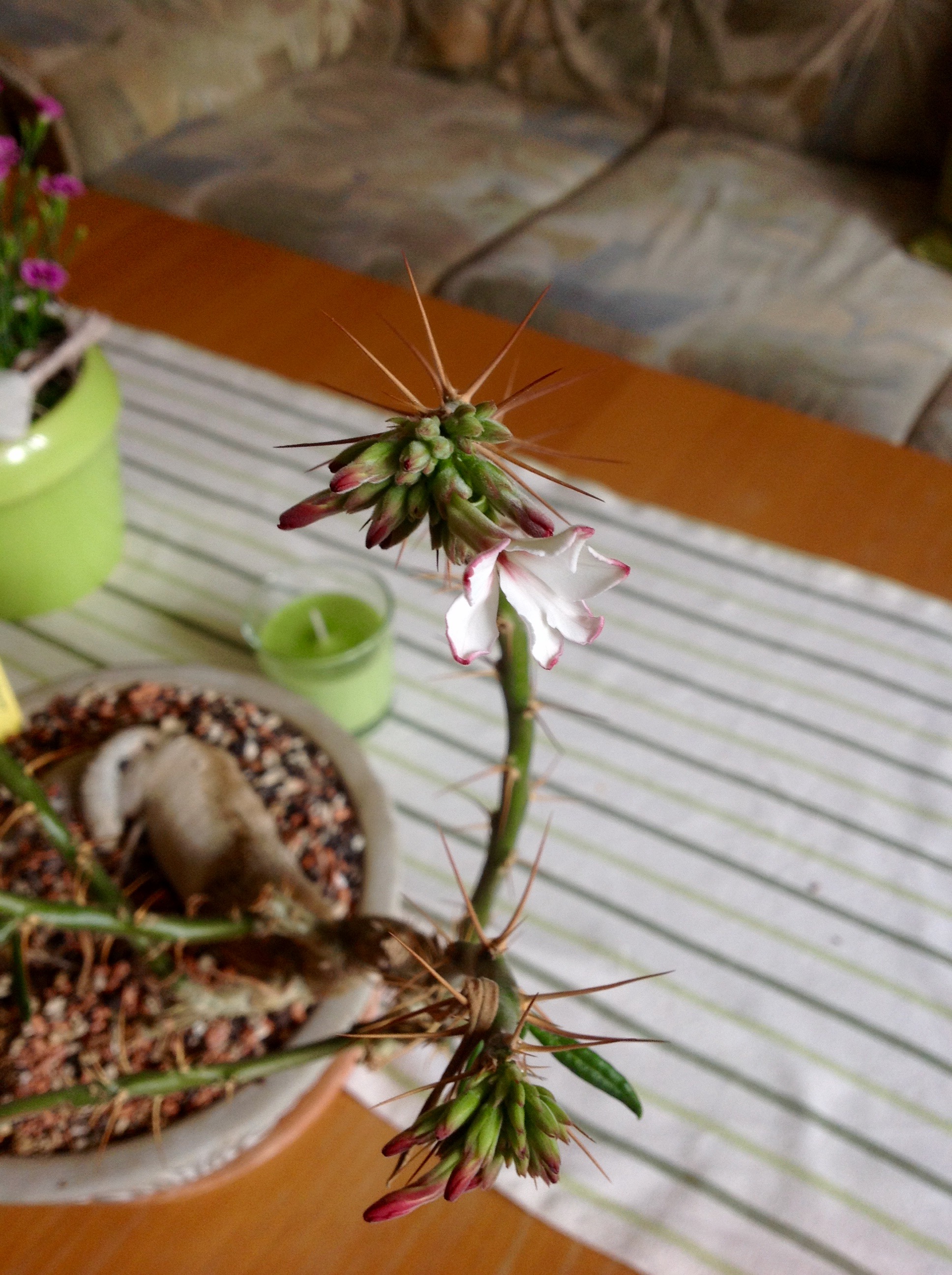 schau mal,Deine bzw. meine Pachypodium sukkulentum! Hab heute die Blüten entdeckt,die ersten,seit ich sie von Dir habe,und wieviel Jahre ist das nun her!!