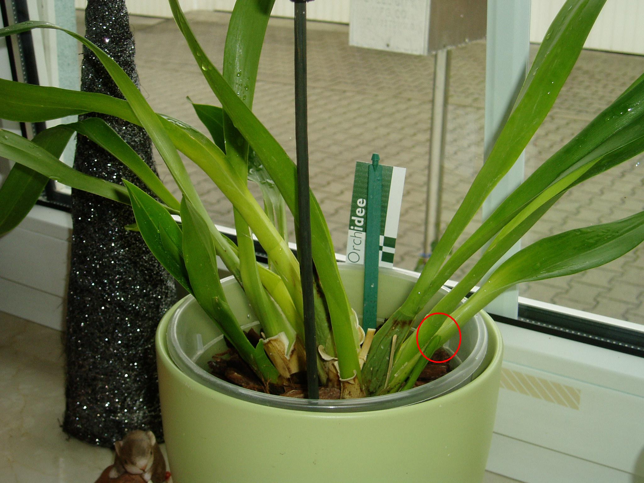 Da sie sehr breit war, dachte ich an Teilung. Gesagt getan! Der eine Teil ist mir eingegangen. War aber nicht schade drum, denn er hatte massig Untermieter Schldläuse. Den zweiten Teil siehst du hier. Läuse hat auch er immer noch, aber wenige. Ich habe ihr Bayer Combistäbchen verabreicht. Das hatte ich im Forum gelesen. Sie steht nun isoliert am Küchenfenster. Aaaaaber trotz sehr kleiner Wurzeln, haben sich zwei neue Triebe gebildet. Den Kleineren habe ich umkringelt. Ich denke mal, dass ich sie aufpäppeln kann! Was meinst du als Expertin, hm?