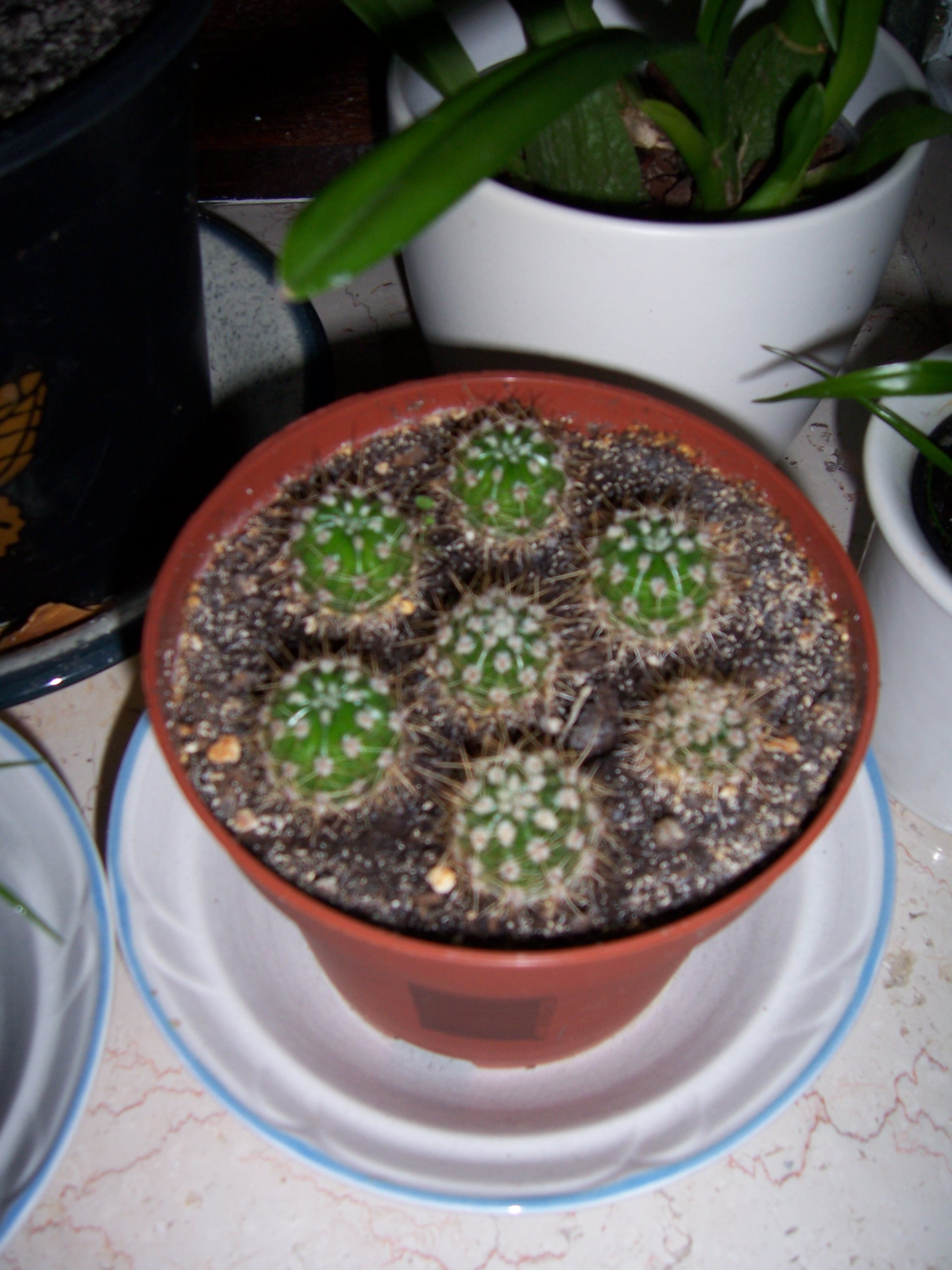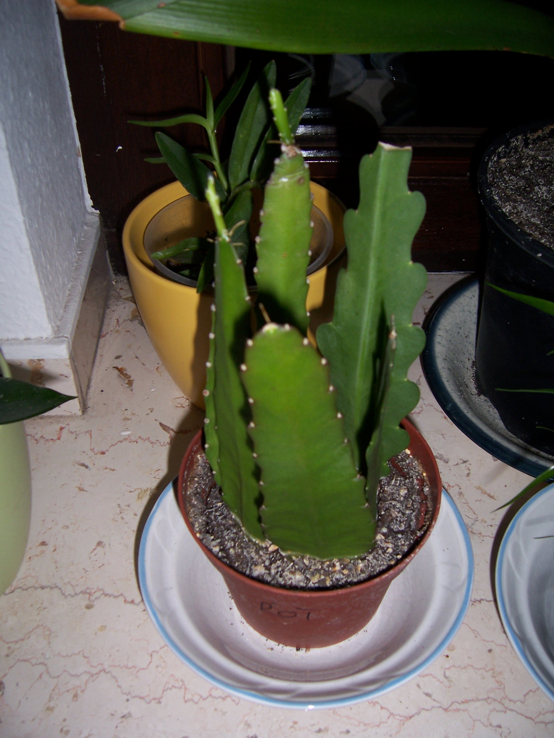 Man sieht an dem Kopf, daß er mal einen Wachstumsstopp hatte, nachdem ich die Mutterpflanze radikal obenrum beschnitten habe. Aber meist kommen dann aus solchen Stellen die nächsten Arme. Der wird sicher mal richtig schön.