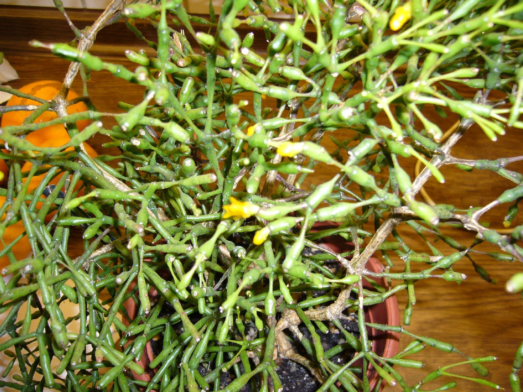 ich hab die Gleiche. Meine hat inzwischen 26 Jahre auf dem Buckel. Normal wächst sie aufrecht! Der Stamm verholzt mit den Jahren. Einzelne, schwache Glieder kann man abdrehen.