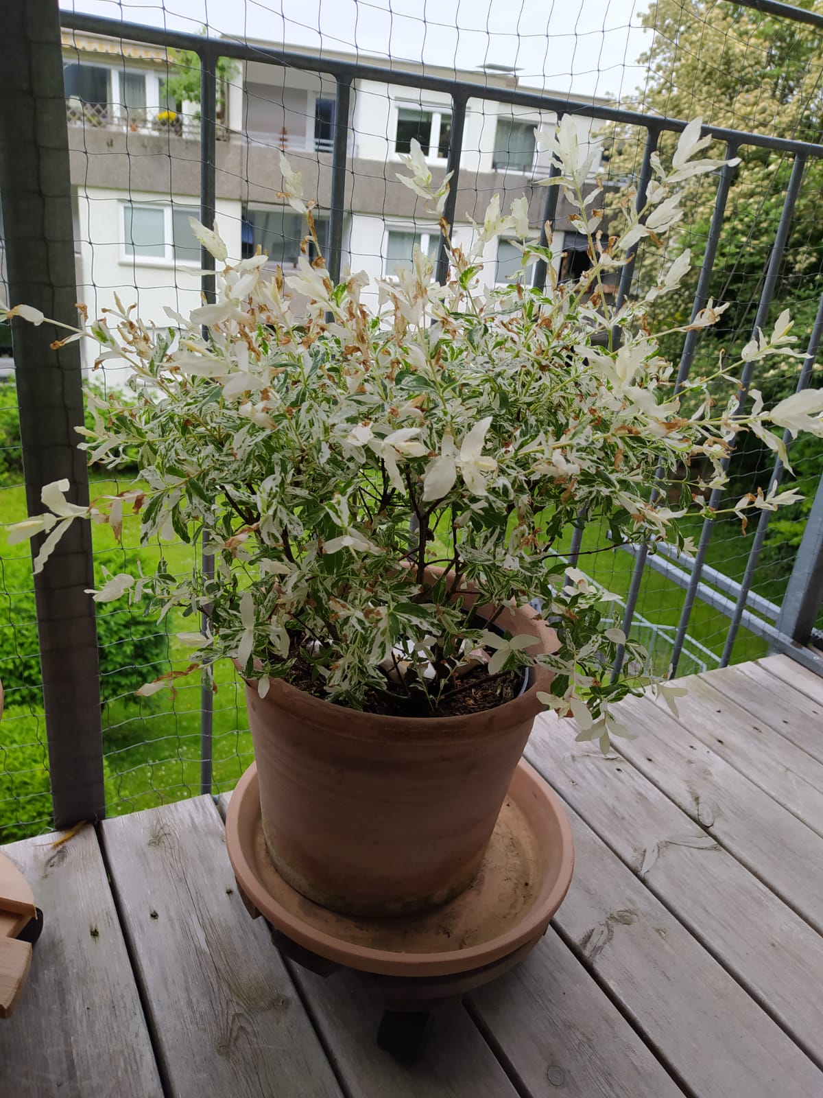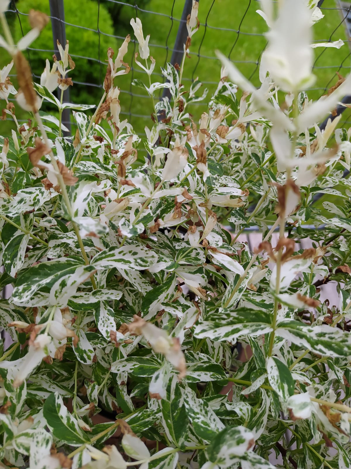 Hallo zusammen! Meine Salix Caprea "Kilarnock" (Ende April im Baumarkt gekauft) sah 2-3 Wochen wunderschön gesund aus, aber seit einiger Zeit werden die weißen Spitzen immer brauner.