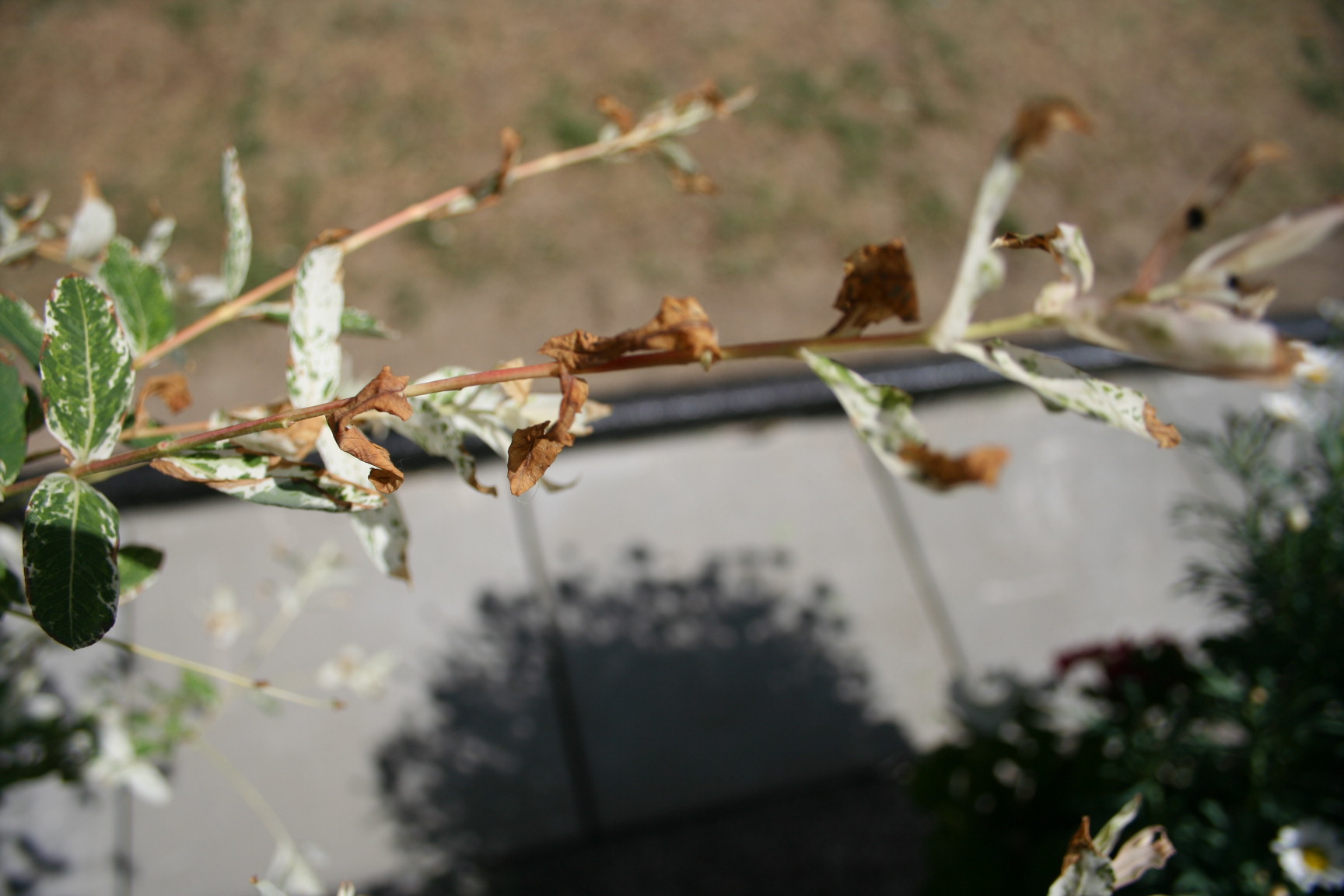 Trocken ist er auch nicht, hat immer genug WAsser bekommen und das Mittel gegen Blattläuse habe ich abends gesprüht.