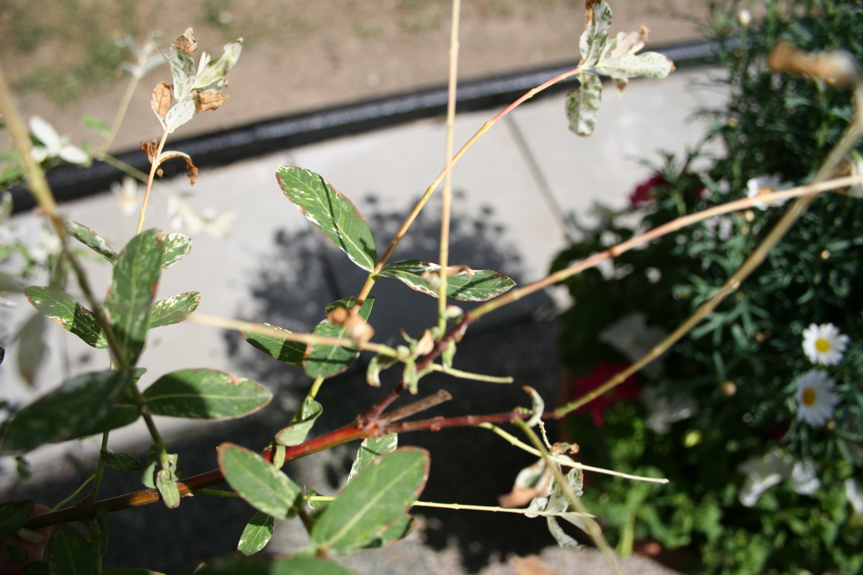 Das Problem mit den braunen Blättern würde ich auch auf das Spritzmittel zurückführen. Die Blätter der Harlekinweide sind doch recht empfindlich. Da kann es schon einmal vorkommen, dass sie braune werden. (Meine Dahlien fanden es letztes Jahr auch nicht witzig ).