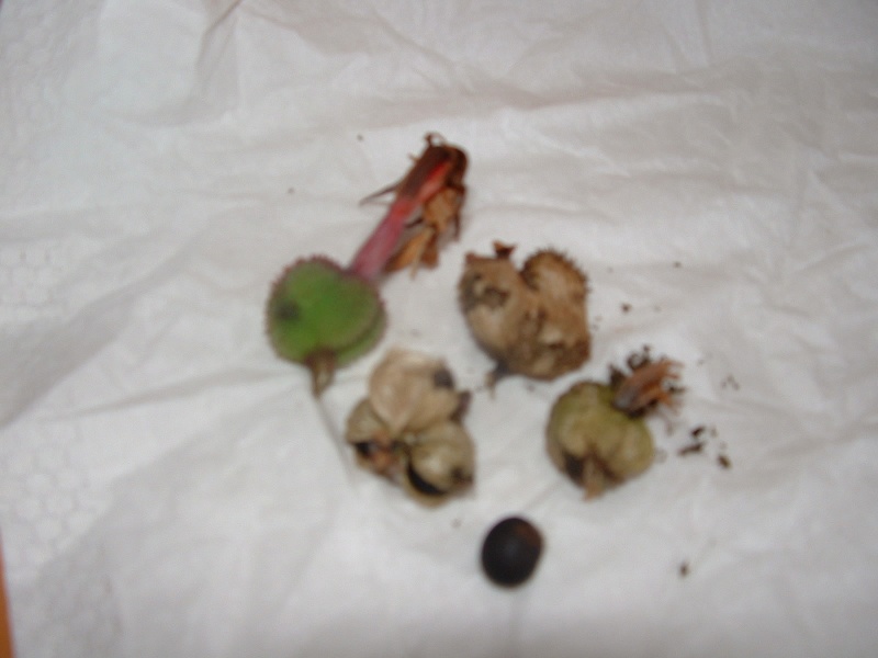 hallo,ich war heute unterwegs und habe mir doch glatt aus dem park ein paar samen gemopst.das waren ganz große blumen,große blätter,die blüten nicht sehr groß-es waren einmal mit rote und gelbe blüten.und die samen waren in solchen kapseln drin.die samen sind schwarz und erbsengroß.kennt jemand die blumen?könnten das vielleicht lilien sein?