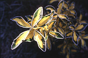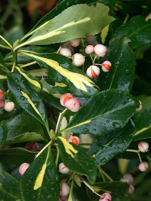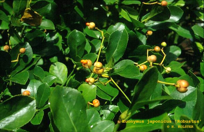 Die Blätter sind dunkel, oval mit Spitze. Es ist nur ein langer Stamm (ca. 2 m) mit kleinen Verästelungen. Ein schlankes Gewächs von etwa 70 cm Breite.