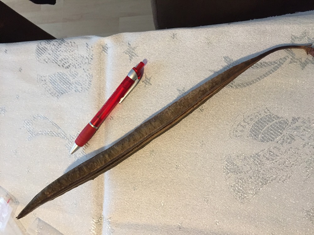 Hallo, habe eine etwa 25 cm lange Hülse mit unzähligen Samen bekommen. Leider weiß ich nicht, um welche Pflanze es sich handelt.