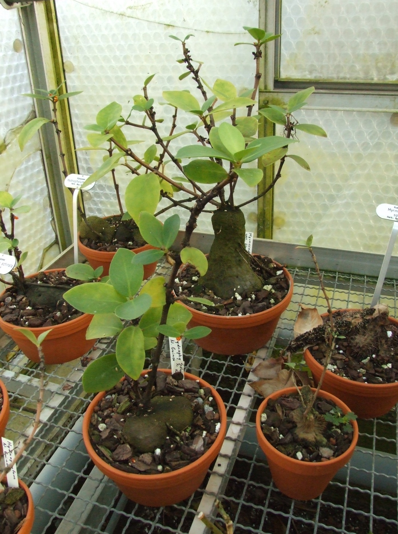 also für mich sahen die alle sehr ähnlich aus, in den einen töpfen steckte halt ein schild mit mymrecodia in den anderen eins mit hydnophytum, was aber natürlich nix dazu aussagt, was nun richtig ist, da alle mit spec. am ende bezeichnet wurden und alle aus neu-guinea stammen sollen!