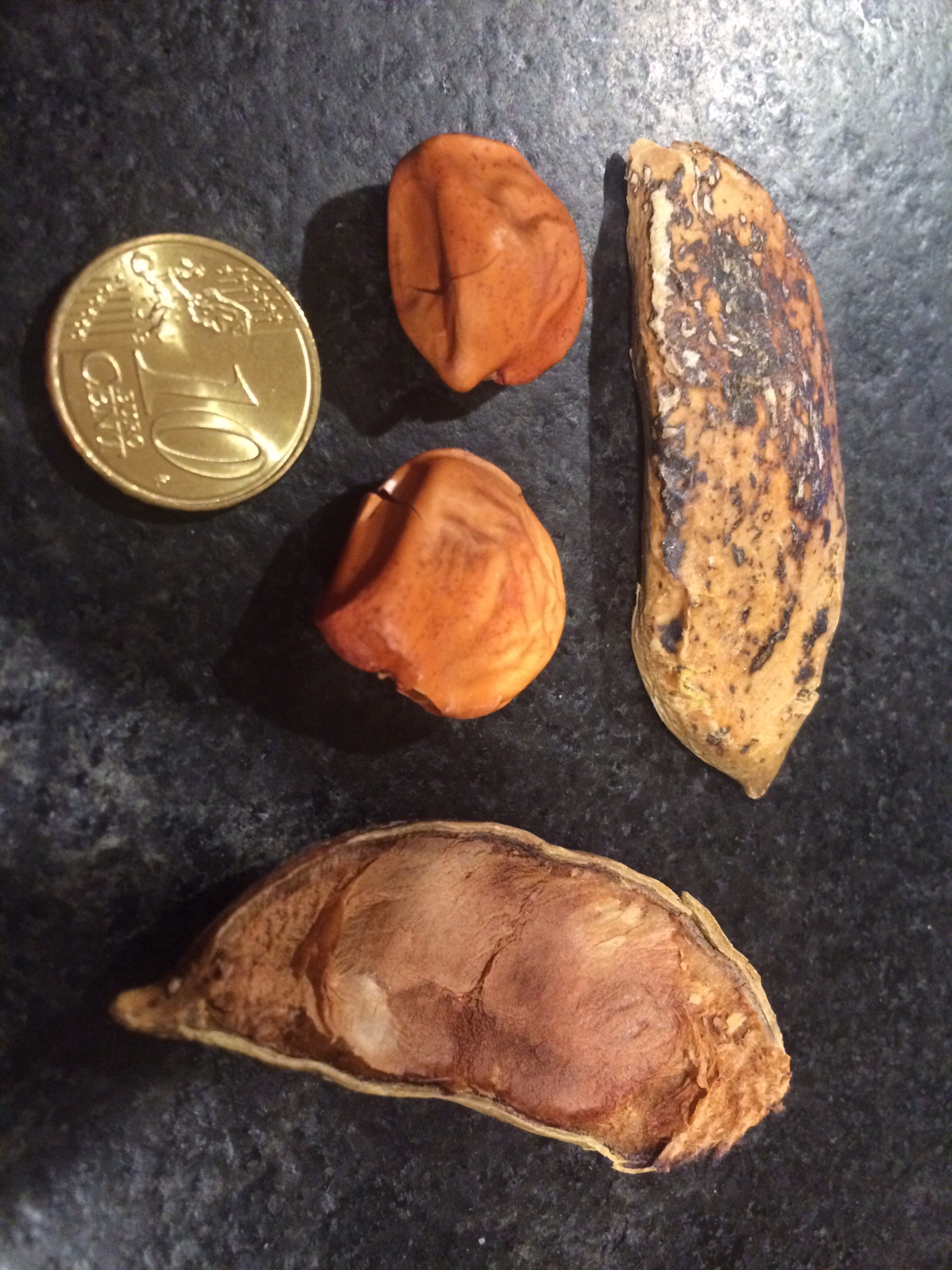 In der Schote waren 2 harte Samen, auf den Bildern sollte man das gut erkennen.