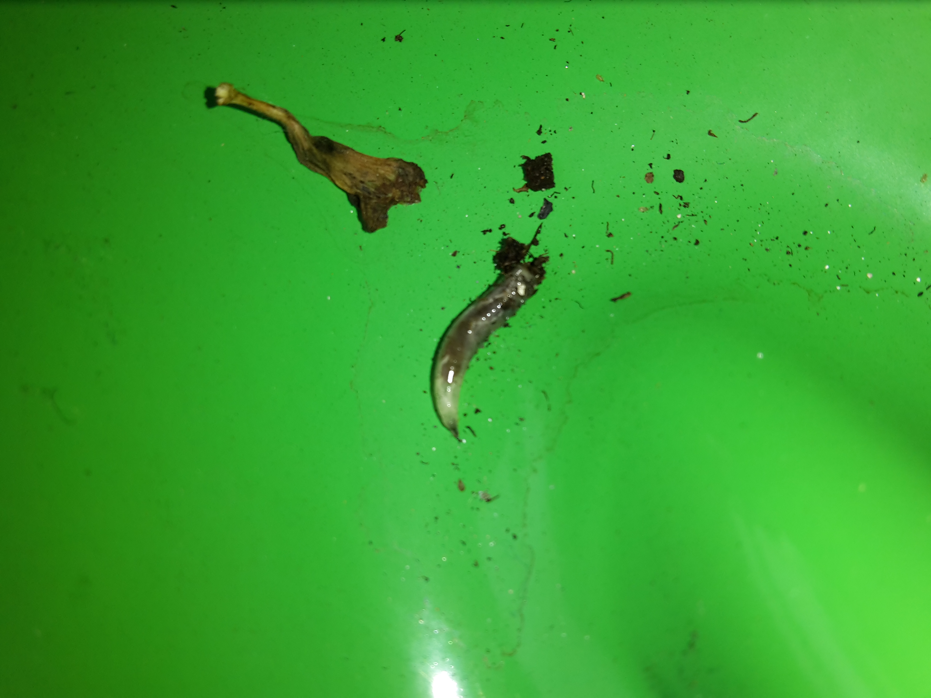 Insgesamt habe ich 3 Stück, zwei stehen näher beisammen und teilen sich auch einen Kübel; diese sind befallen. Die dritte steht etwas weiter weg und hat nun auch die ersten 1-2 Blätter bekommen, die so aussehen.